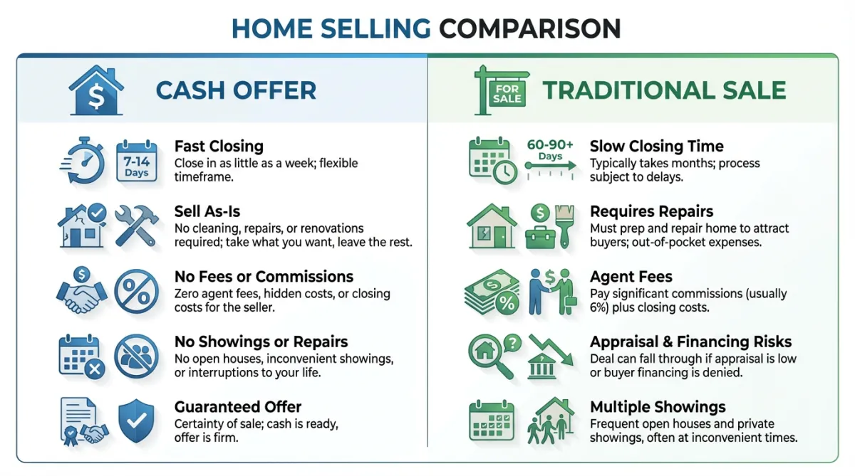 At [Your Company Name], we help homeowners understand all their options so they can make the best choice for their circumstances. Here’s how a cash offer compares to other selling paths.